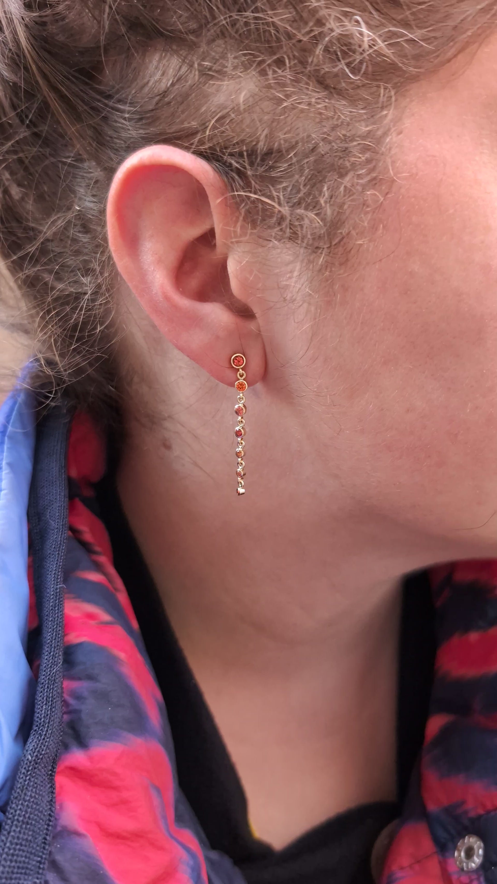 Elegant AF - Party-worthy dangles, 7 round sapphires dangling off a stud earring set in bezels. Can be modified to have hooks.