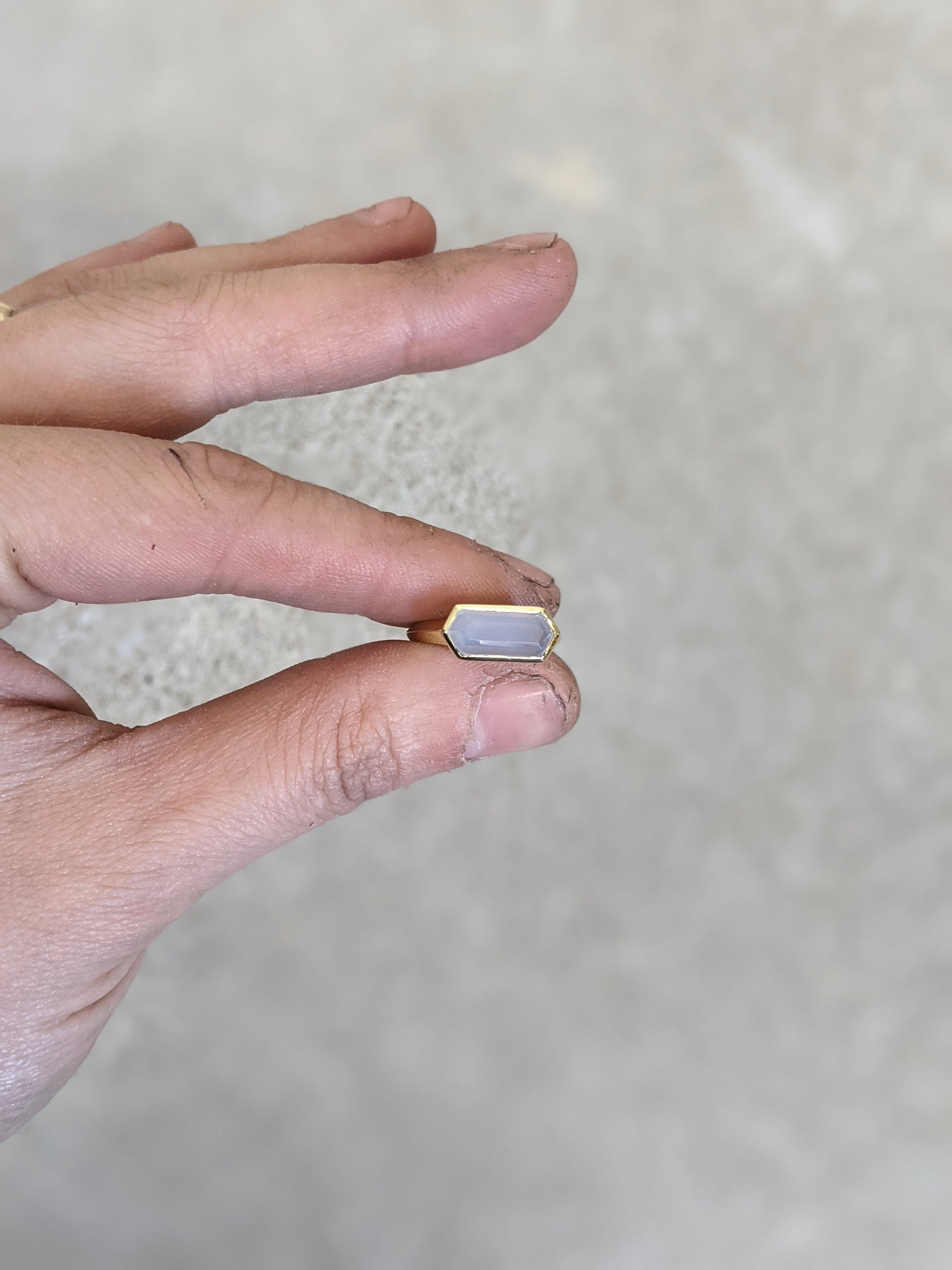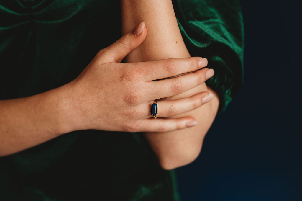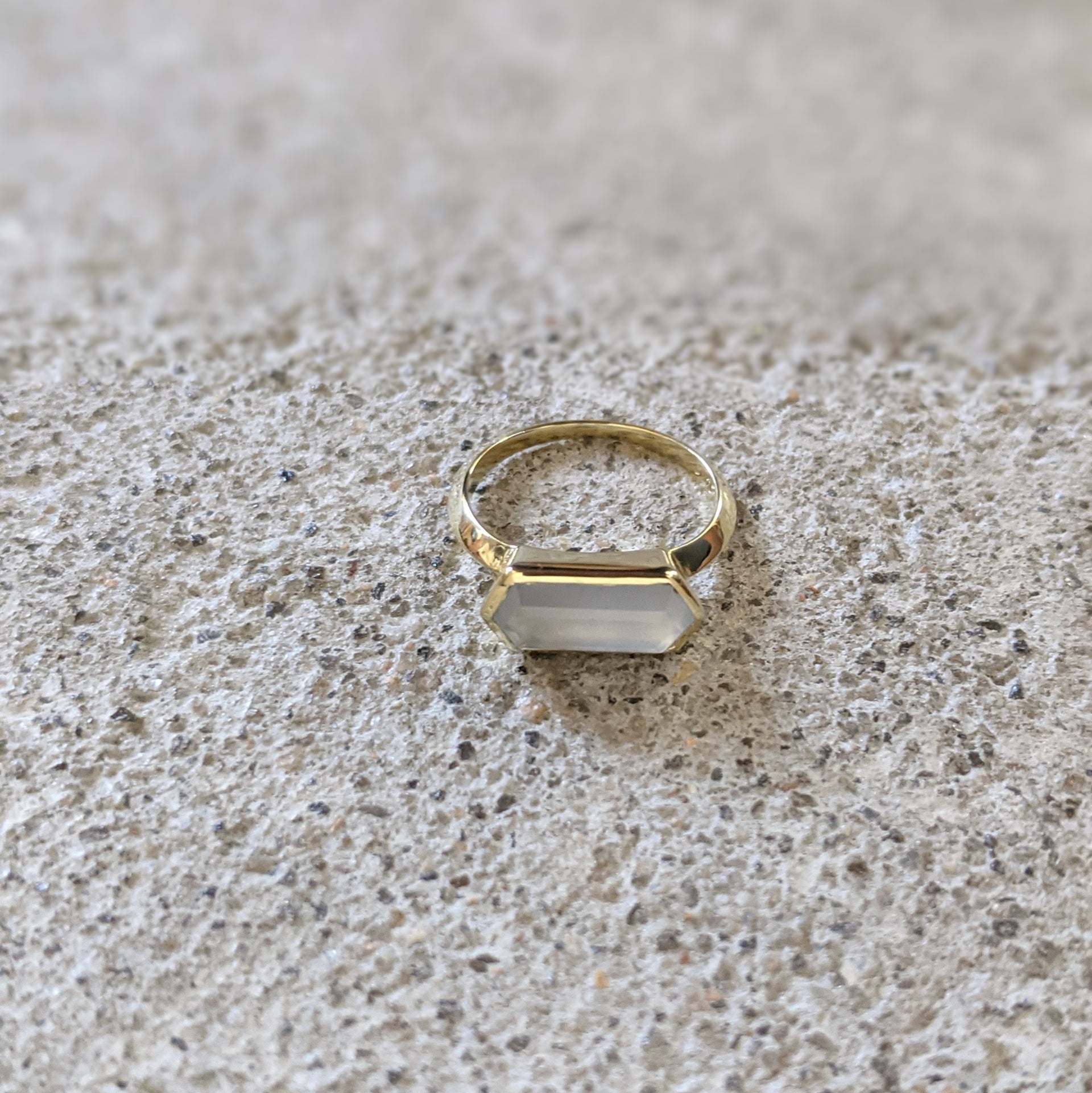 Elongated Hexagon Ring 12x5mm modern fair trade stones with a heavy bezel in your choice of semi-precious stone and metal.
