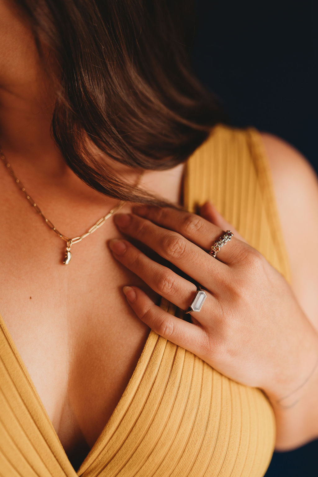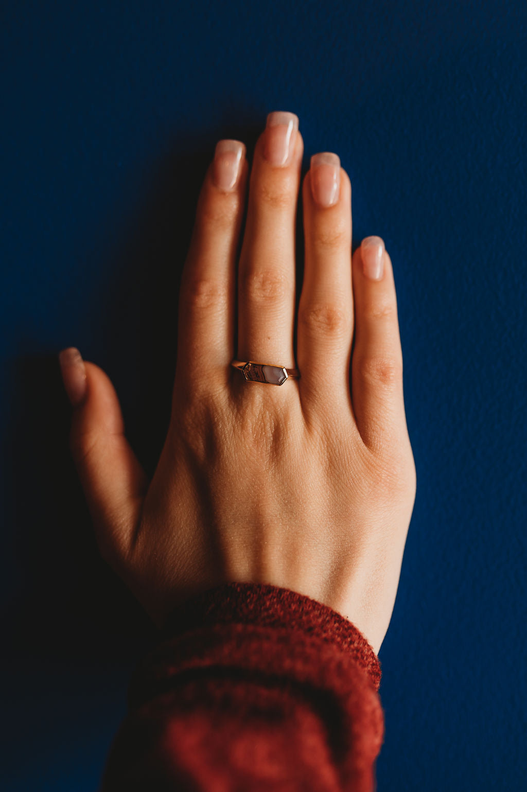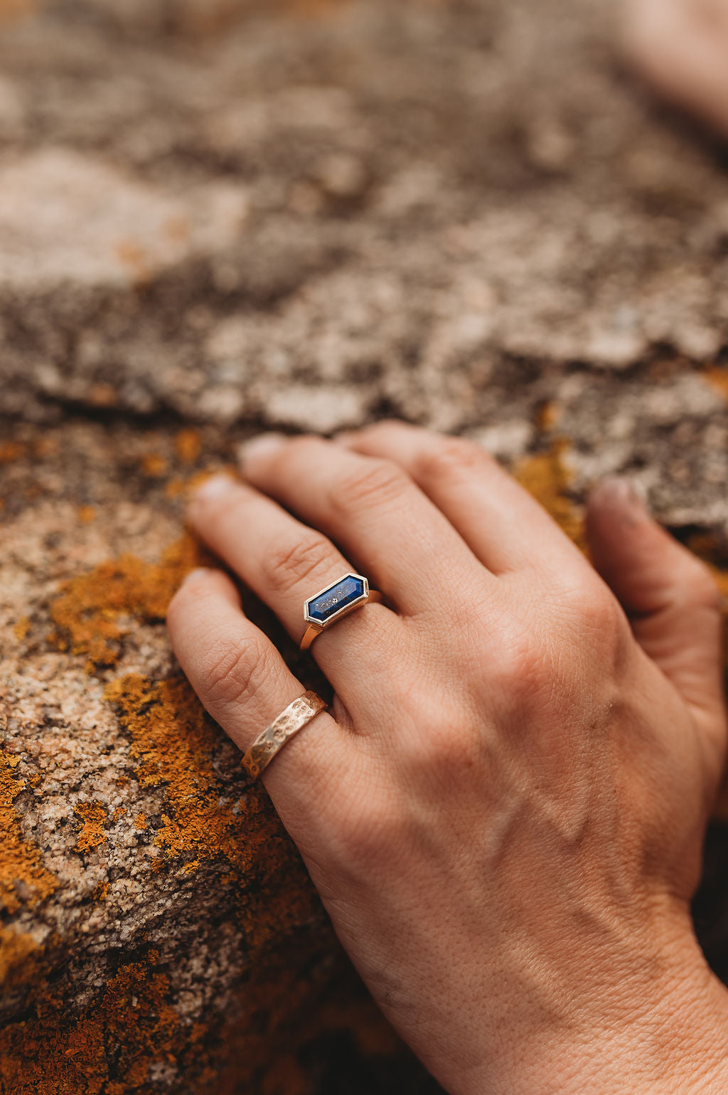 Elongated Hexagon Ring 12x5mm modern fair trade stones with a heavy bezel in your choice of semi-precious stone and metal.